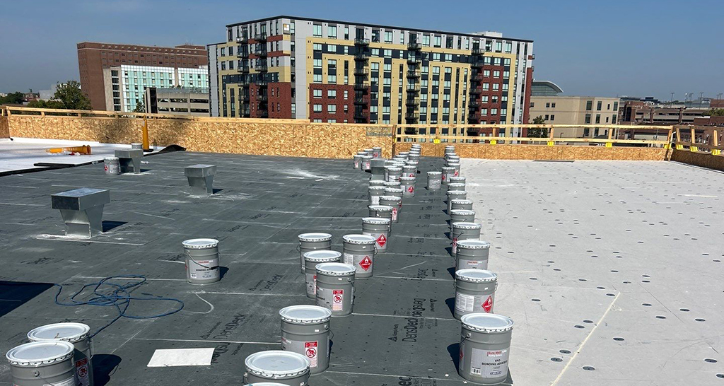 - Roofing materials are applied using advanced techniques like heat welding and adhesive bonding.