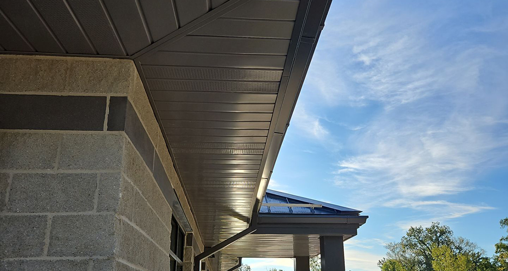 Soffit is a durable and weather-resistant covering installed under roof overhangs to protect rafters and improve ventilation. Made from materials like aluminum, galvanized steel, or stainless steel, it resists moisture, pests, and corrosion for long-lasting performance. This type of soffit helps regulate attic airflow, preventing mold growth and heat buildup while enhancing energy efficiency. With a sleek, low-maintenance design, sheet metal soffit provides both functional protection and a modern aesthetic for residential and commercial buildings.